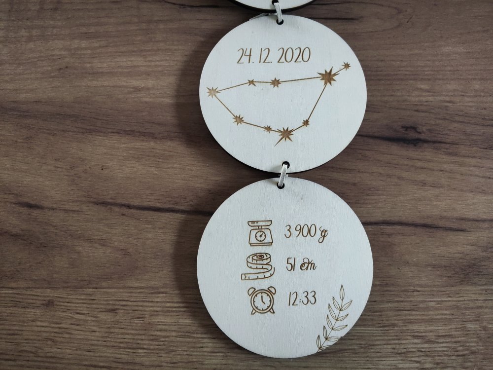 • Třetí kruh: Datum narození a gravírované souhvězdí.