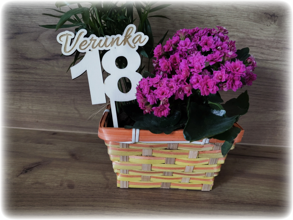 Oslavte narozeniny stylově s naším personalizovaným dřevěným zápichem! Vygravírujeme k číslovce jméno na přání a nápis krásné narozeniny. Perfektní pro dorty i květiny. 🎂🌸 Více